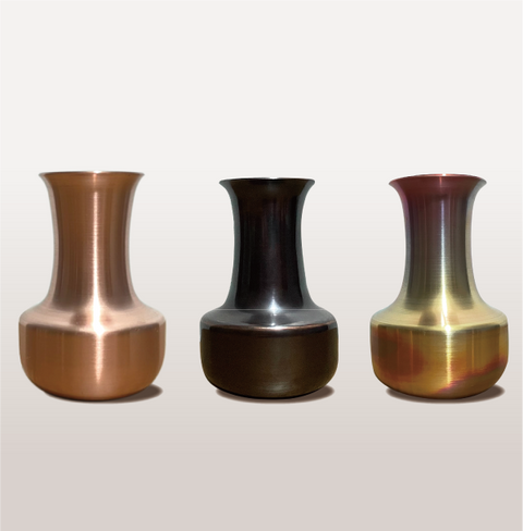一枚の金属板から加工する為継目がなく、とてもスタイリッシュであり、草花はもちろん、銅の煌びやかすぎない風合いがドライフラワーなどにも相性抜群です。